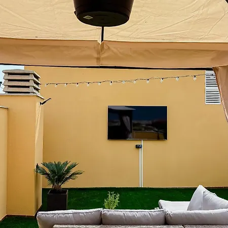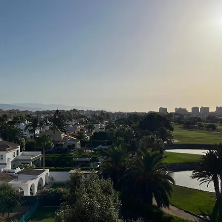 La villa Apartamento Campo de Golf Roquetas de Mar, situada a tan solo 350 m de la Spiaggia Las Marinas, cuenta con una terraza con vistas al jardín.